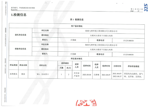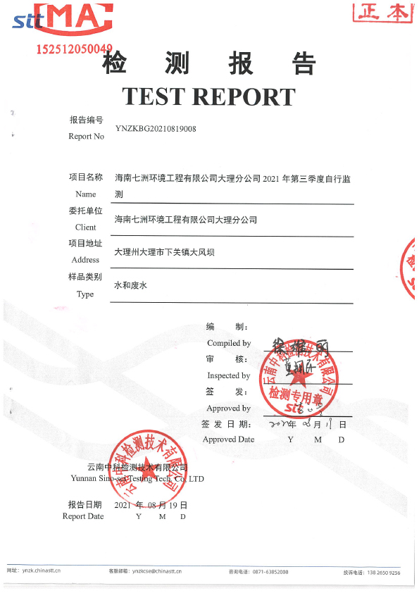 海南七洲環境工程有限公司大理分公司2021年第三季度自行監測